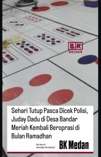 Hukum & Kriminal Sumut Terkini Walau di Bulan Suci, Mafia Judi Di Deliserdang Masih Beraktivitas Maret 2, 2026 • Deli Serdang – M24 Aktivitas perjudian jenis dadu putar di Desa Bandar Meriah, Kecamatan Bangun...